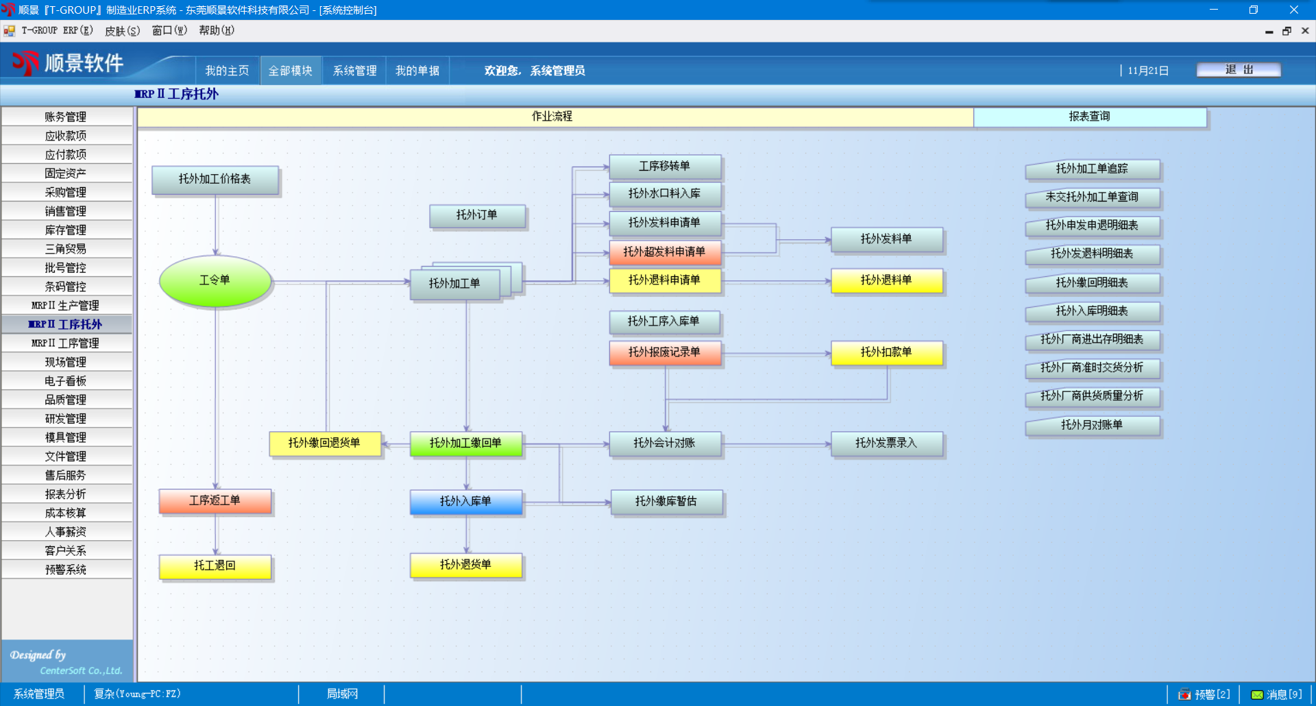 6.    外发材料管理,对于委外加工材料的发出、收回、结存有详细报表反映;